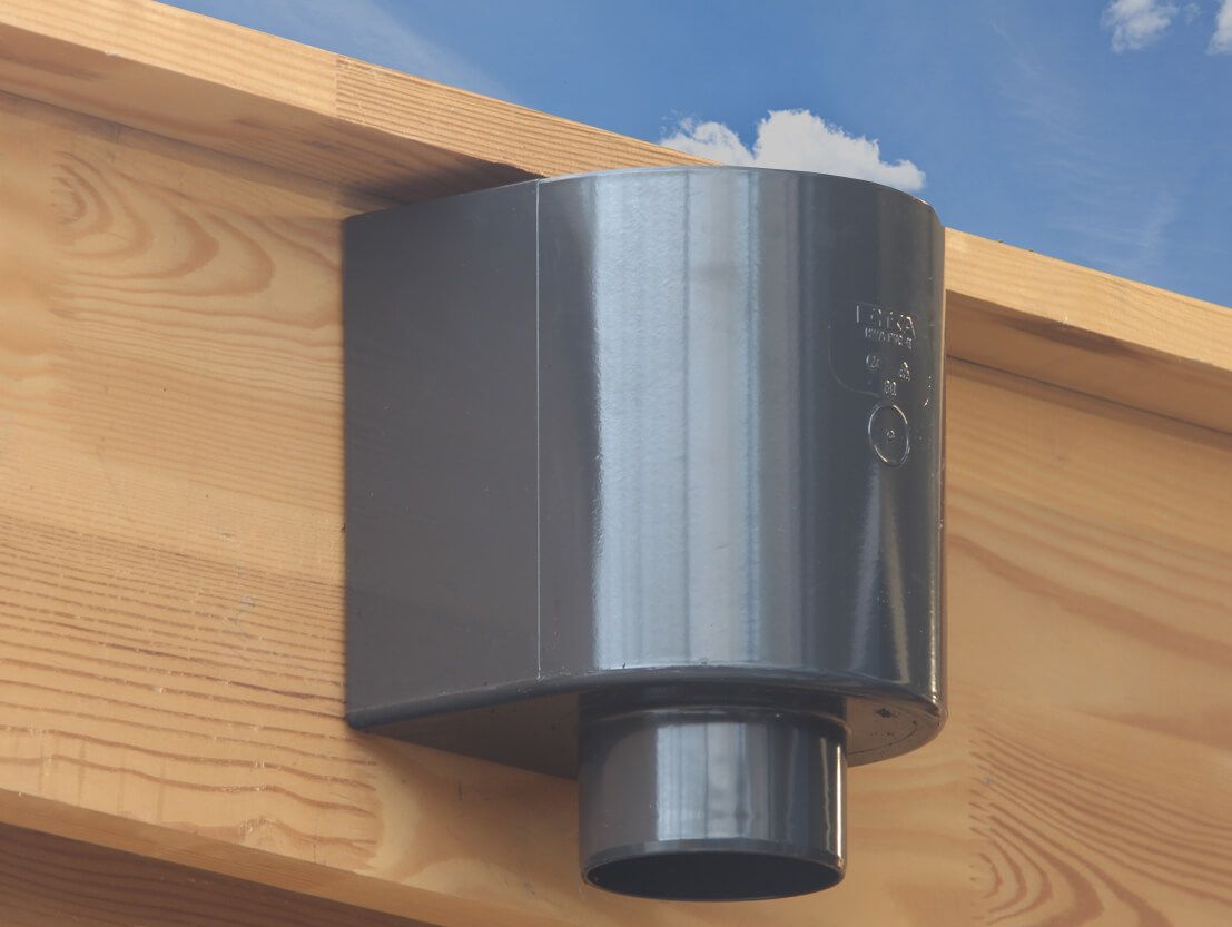 De Hemelwaterafvoerset platdak zijuitloop antraciet PVC is een complete, lichte en duurzame oplossing voor het afvoeren van regenwater van platte daken. Dankzij de zorgvuldig samengestelde PVC-onderdelen heeft u alles bij de hand voor een snelle montage en een langdurig betrouwbare werking met een moderne uitstraling.