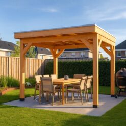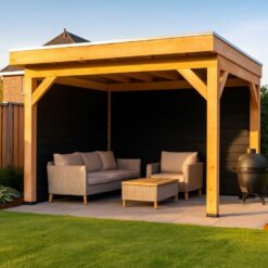 Deze douglas houten overkapping 300×300 cm is een perfecte mix van stijl, kwaliteit en gebruiksgemak. Ideaal voor wie zelf aan de slag wil en wil genieten van een sfeervol overdekt terras of veranda. Door de natuurlijke uitstraling van douglashout past deze overkapping in zowel moderne als landelijke tuinen.