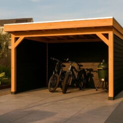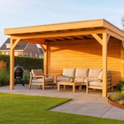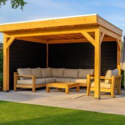 Deze douglas houten overkapping 400×300 cm is een perfecte mix van stijl, kwaliteit en gebruiksgemak. Ideaal voor wie zelf aan de slag wil en wil genieten van een sfeervol overdekt terras of veranda. Door de natuurlijke uitstraling van douglashout past deze overkapping in zowel moderne als landelijke tuinen.