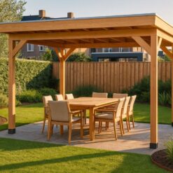 Deze douglas houten overkapping 400×300 cm is een perfecte mix van stijl, kwaliteit en gebruiksgemak. Ideaal voor wie zelf aan de slag wil en wil genieten van een sfeervol overdekt terras of veranda. Door de natuurlijke uitstraling van douglashout past deze overkapping in zowel moderne als landelijke tuinen.